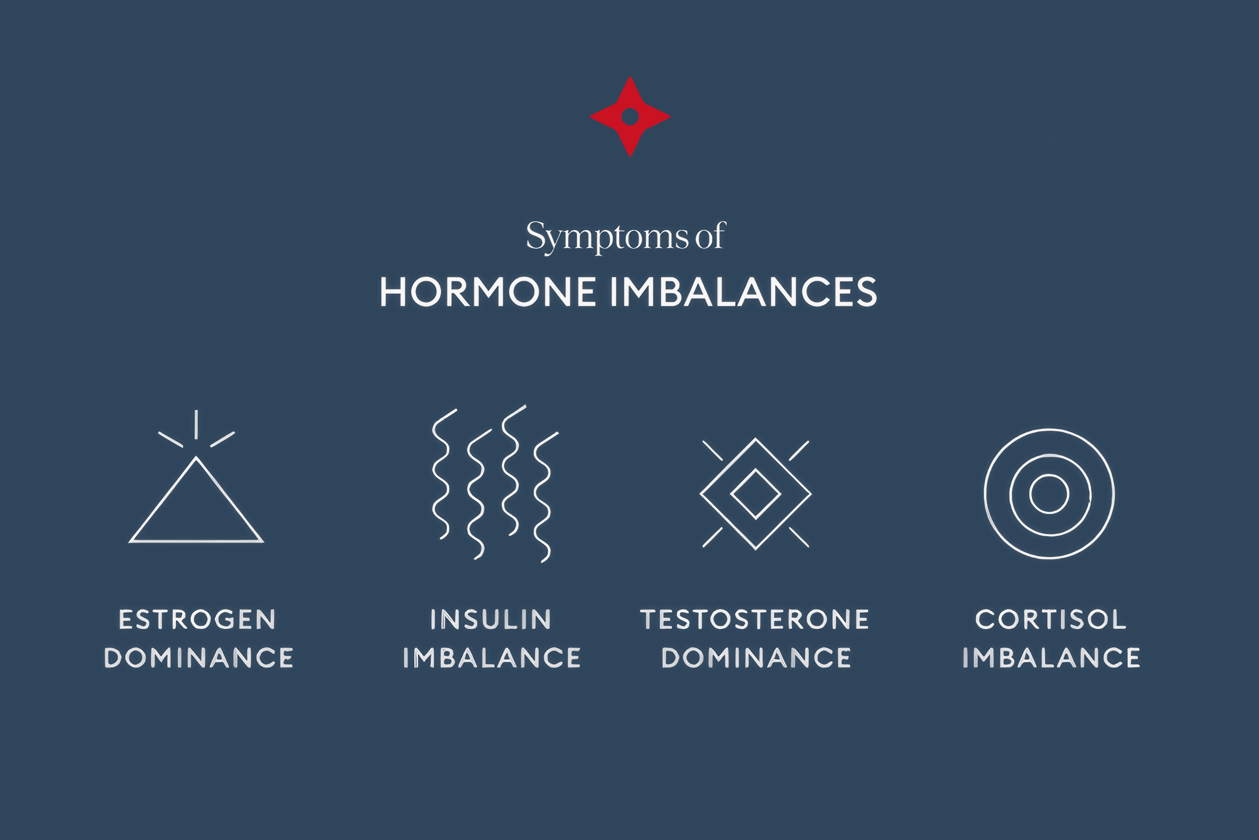 • Estrogen dominance — heavy periods, bloating, anxiety, and water retention.
